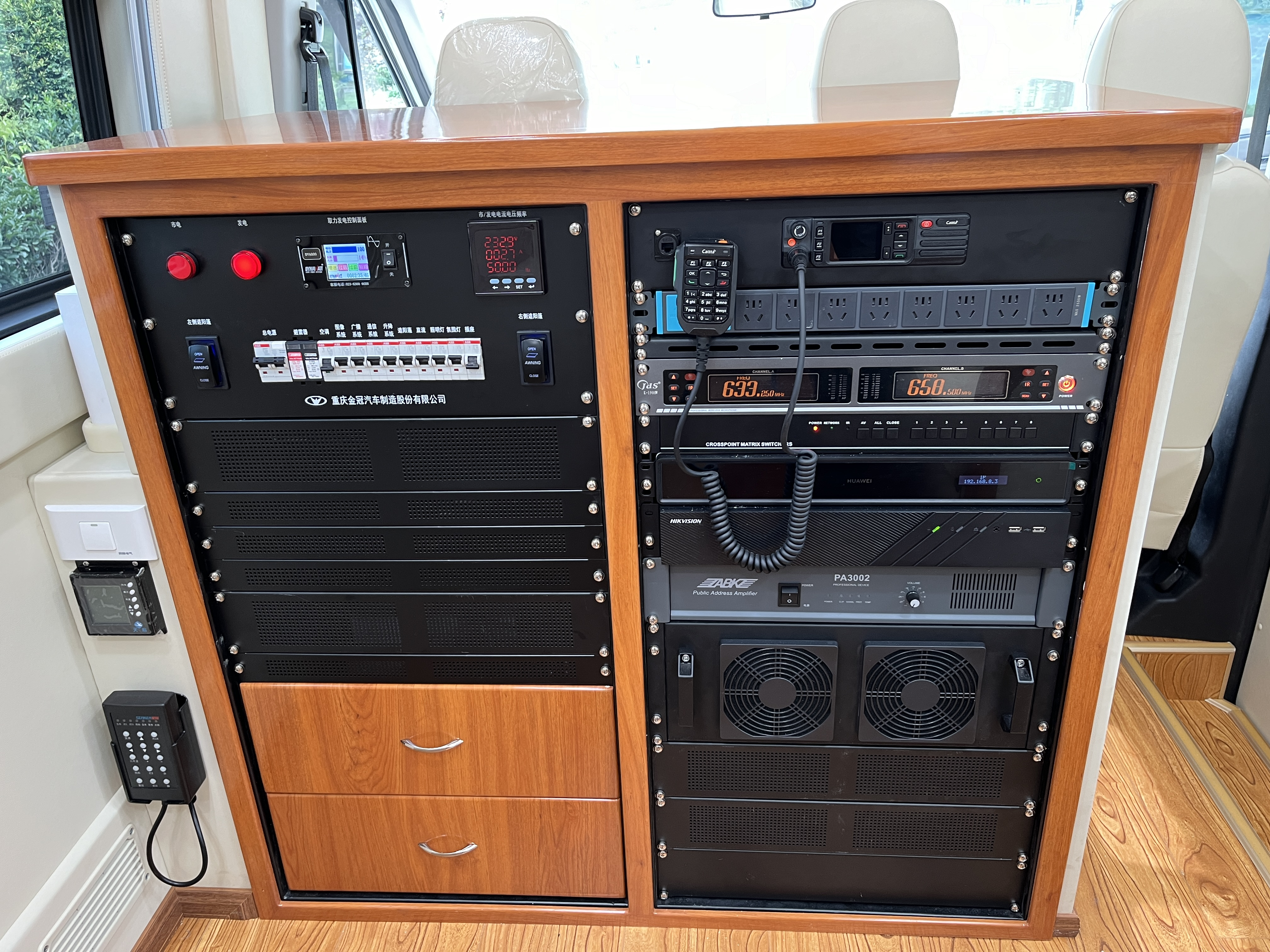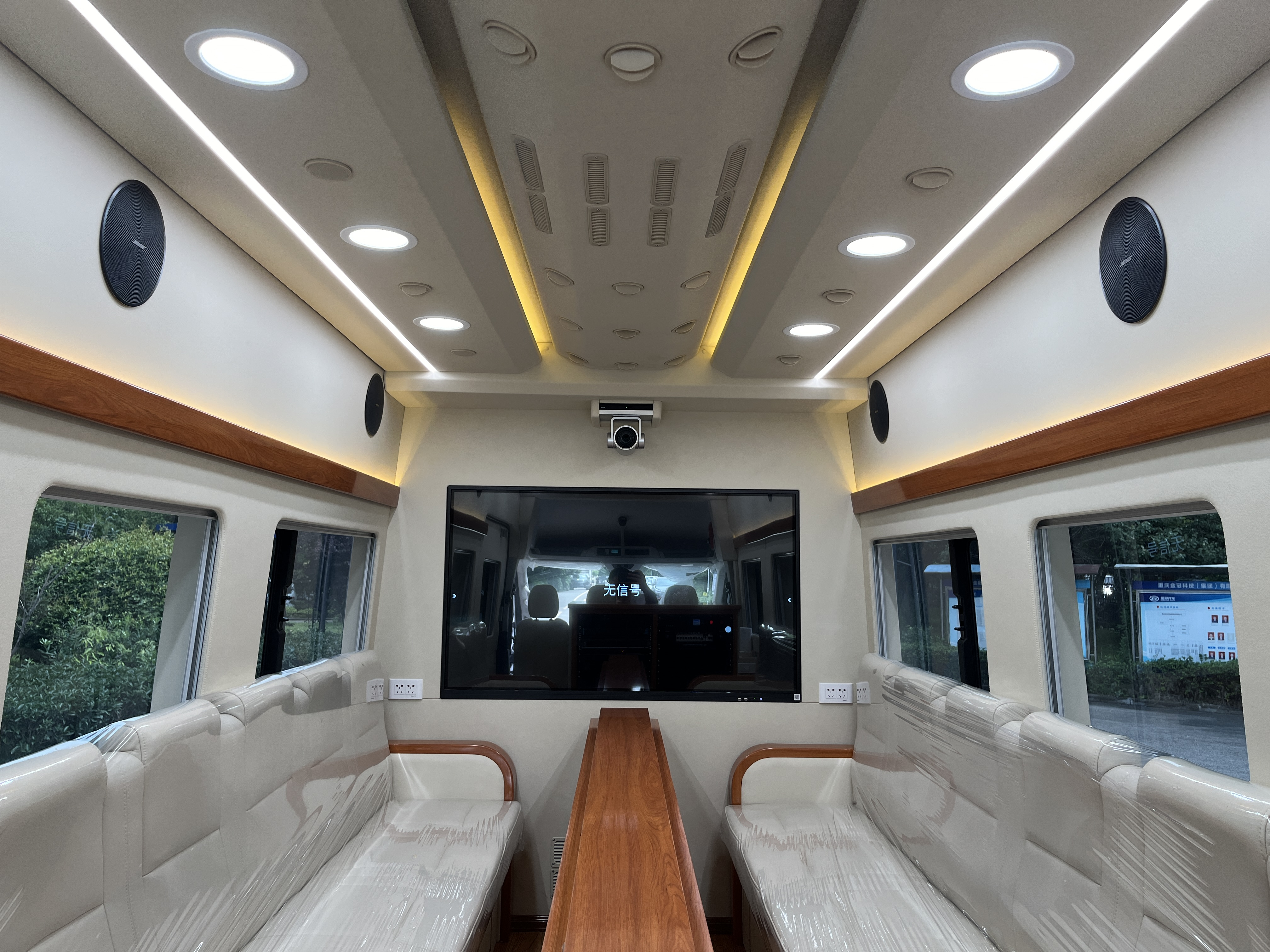 基本参数 底盘品牌:江铃福特 货厢尺寸(mm):- 总质量(Kg):5000 防抱死系统:有 轴荷:1720/3280 前轮距:1740 驱动形式:4×2 最高车速(km/h):100 排量(L):2.3 燃料种类:柴油 会议桌:折叠会议桌 公告型号:SLT5050XZHE1L 底盘型号:JX6676TY-N6 外形尺寸(mm):6703×2164×3270 整备质量(Kg):3950 接近角/离去角:19/12(°) 前悬/后悬(mm):1023/1930 后轮距:1702 轴距:3750 轮胎:195/75R16C 功率/马力:128(kw)/175(PS) 排放标准:国六 参会人数:6-8人(2套长排沙发) | 功能系统 无人机系统、卫星通信系统、会议系统、音视频系统、集中控制系统、 计算机/网络设备、供电系统、照明系统 |